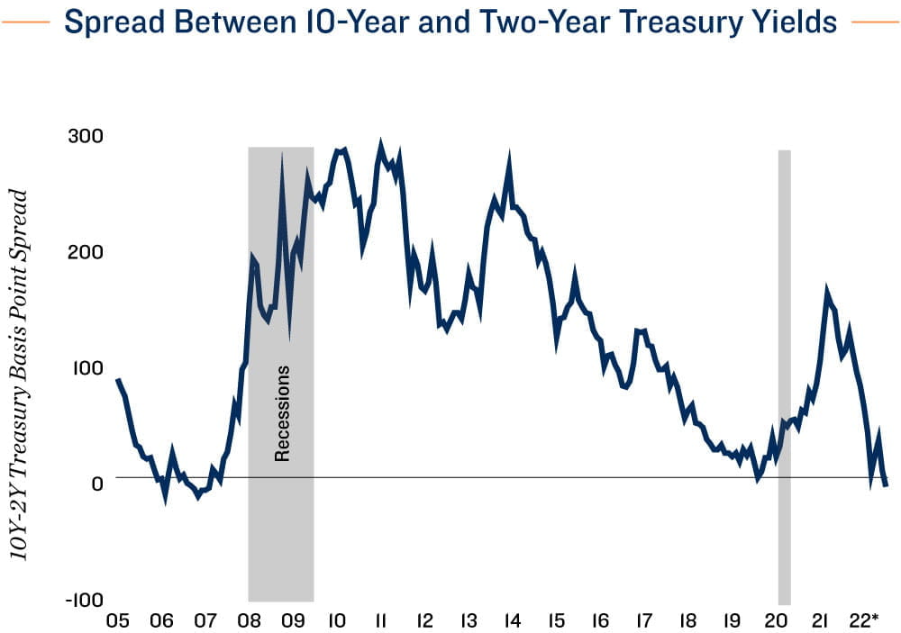 Possible recession predictor lit up this month. In early July, the spread between the two-year and 10-year treasuries inverted, with the yield on the shorter-term instrument inching above that of the long-term note. Typically, bonds with longer maturities pay a higher interest rate to compensate investors for the risk of holding those assets longer. When yields invert, it implies investors perceive more economic risk in the near future than down the line. Six of the past seven sustained inversions have preceded a recession by up to 23 months. As such, this most recent inversion has sparked concern for an impending economic downturn, especially as the Federal Reserve has been aggressively hiking interest rates to temper inflation. This assertive tightening, however, is distorting the treasury yields.