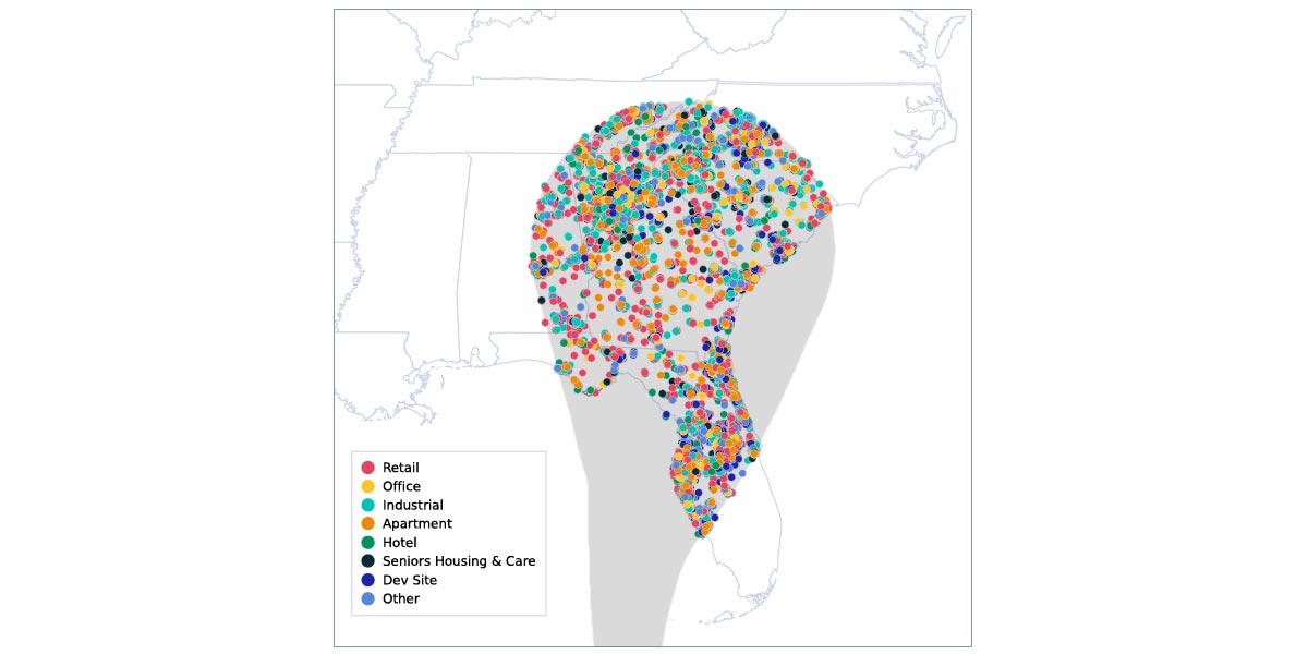 This aggregation of commercial real estate assets in the storm’s path includes only institutional-quality properties priced USD 2.5 million and greater. There are other assets priced below that threshold that face similar risks.1