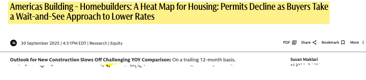 New residential housing construction momentum continued cooling in August, with permits under pressure nationally, particularly in the South and West. Builders are managing inventory tightly while awaiting further Federal Reserve interest rate cuts to hopefully revive demand, with Midwest markets standing out as relative outperformers. Many buyers remain sidelined by affordability woes, as elevated mortgage rates and high home prices crush demand, and a softening labor market now adds to the challenges.